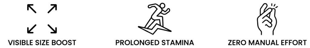 Sensselo works using a controlled vacuum mechanism that creates gentle negative pressure around the penis. This pressure draws blood into the erectile chambers (corpora cavernosa), helping them expand and fill more effectively. As blood flow increases, the penis becomes firmer and may appear slightly larger during erection. The improved circulation also helps support stronger and longer-lasting erections.